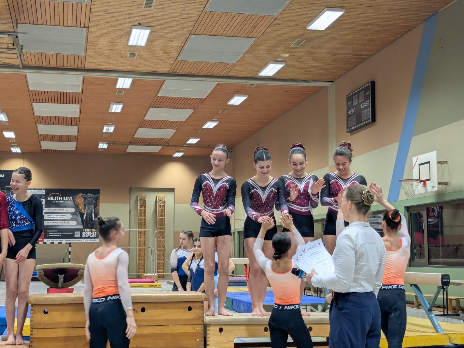 Am 14.01.2026 machte sich das GGK-Turnteam wieder auf nach Odenheim, um am Kreisentscheid des Schulwettkampfs "Jugend trainiert für Olympia - Gerätturnen" teilzunehmen. Das diesjährige Team bestand aus Carla (8A), Jana (9D), Mascha (5B), Michelle (7C) und Milla (8C), wobei Milla krankheitsbedingt leider nicht starten konnte. Geturnt wurde der anspruchsvolle Kürwettkampf U16 B LK4.