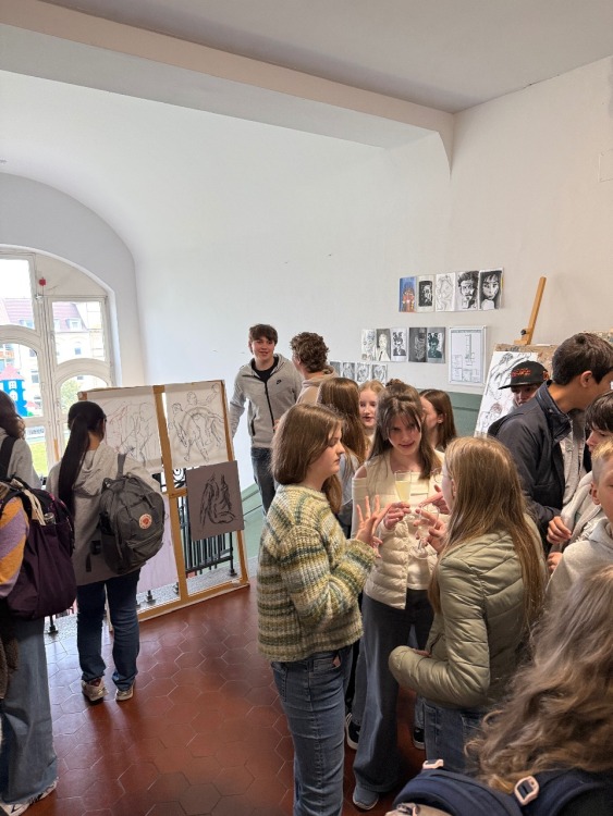 am 7. Mai - PREVIEW des Leistungskurs Kunst JG1. Am 21. April gab es in der zweiten großen Pause einen kleinen Einblick in die Arbeiten des Leistungskurs Kunst von Frau Bux. Mit einem Gläschen hausgemachter Limo haben wir mit geladenen Gästen angestoßen und uns über die zahlreichen Kunstinteressierten sehr gefreut!