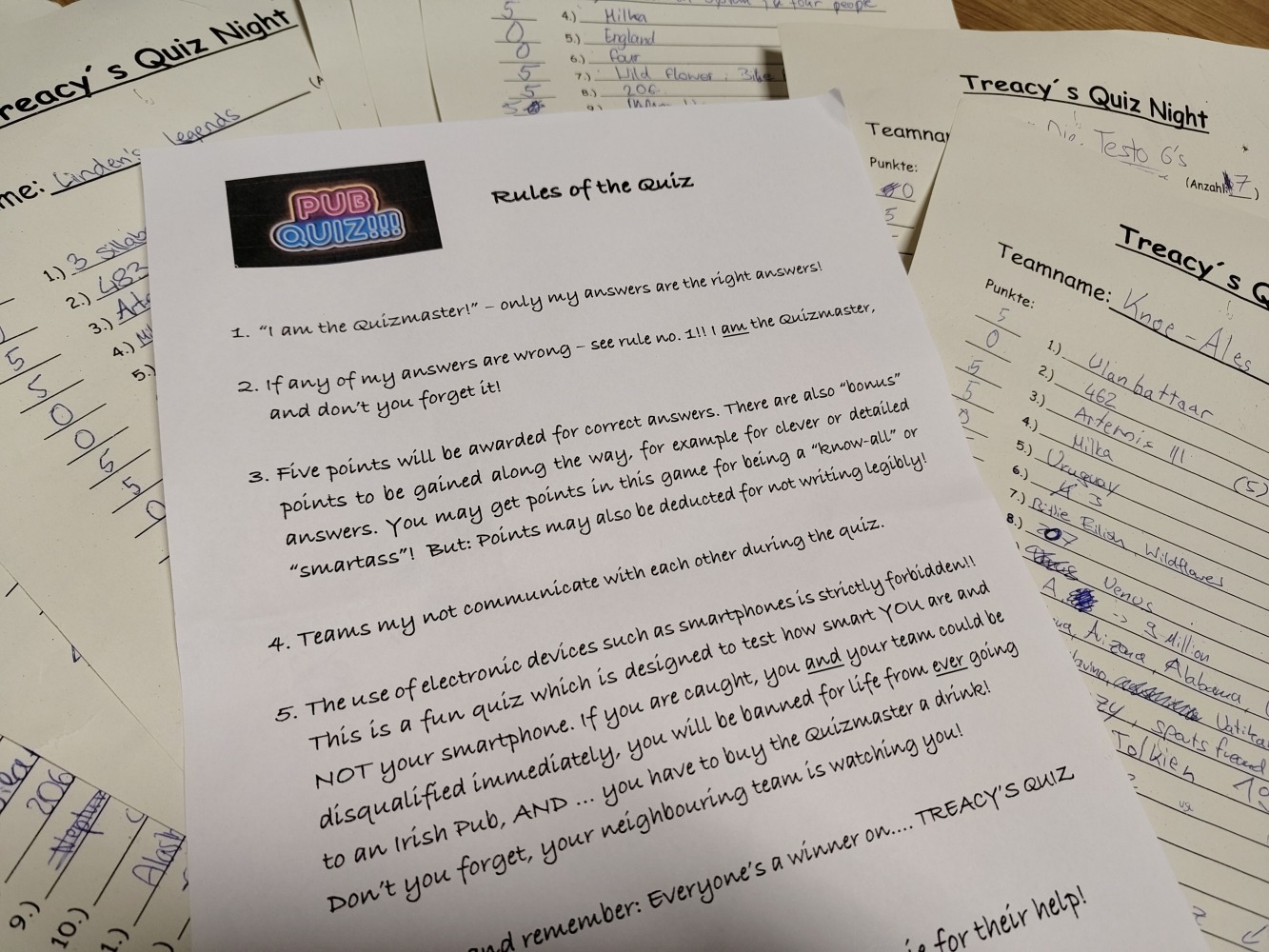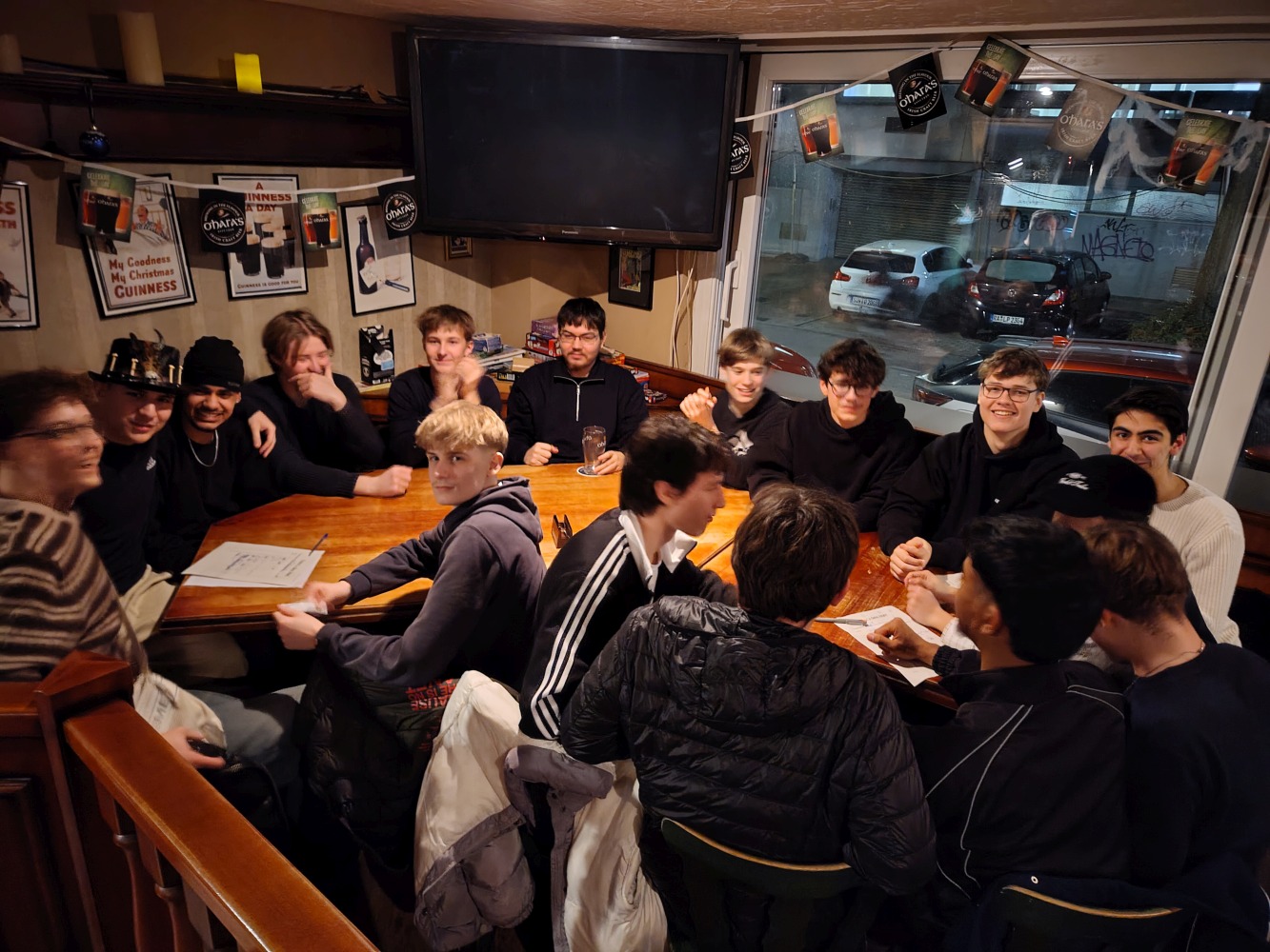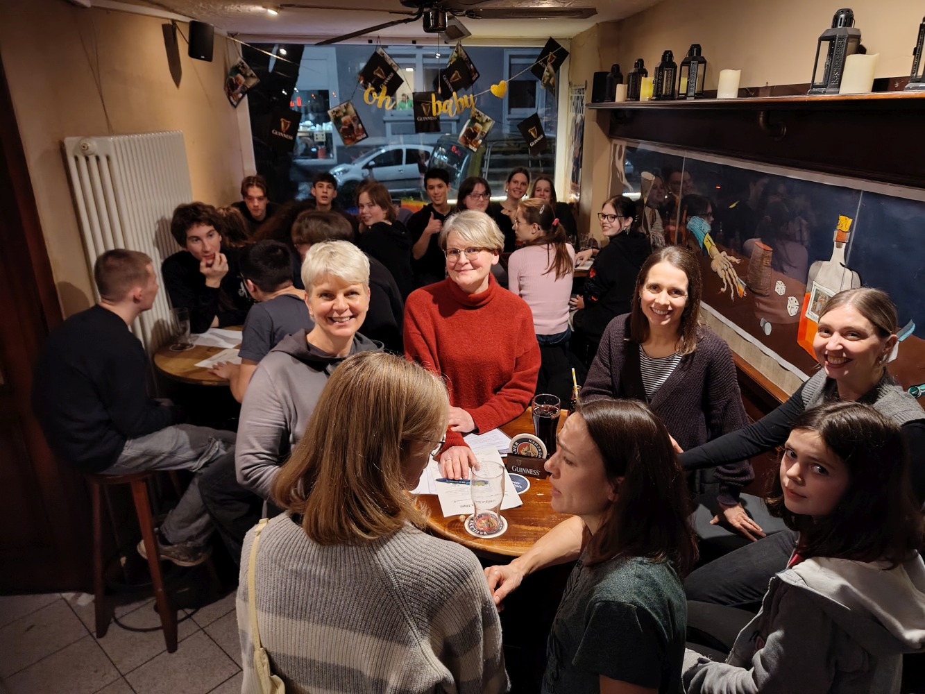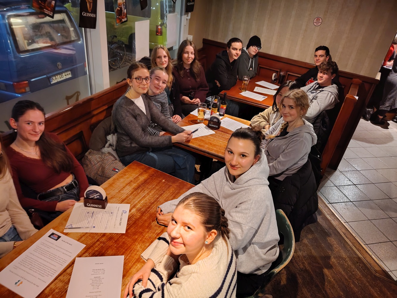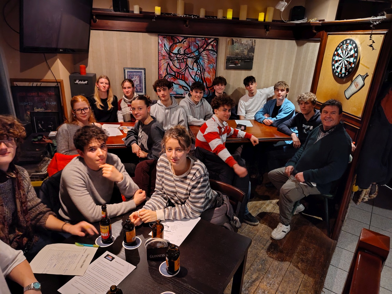 Jahrgangsstufe im Linden’s Pub bei Treacy’s Quiz Night. What was voted „Jugendwort 2026“ in Germany? How many bones does the human body have? Or how many humans have actually walked on the moon? All diese Fragen und noch viele mehr waren Teil des Pub-Quiz am 8.2. im Linden’s Pub, an dem 80 Schüler/innen und Lehrer/innen teilnahmen.