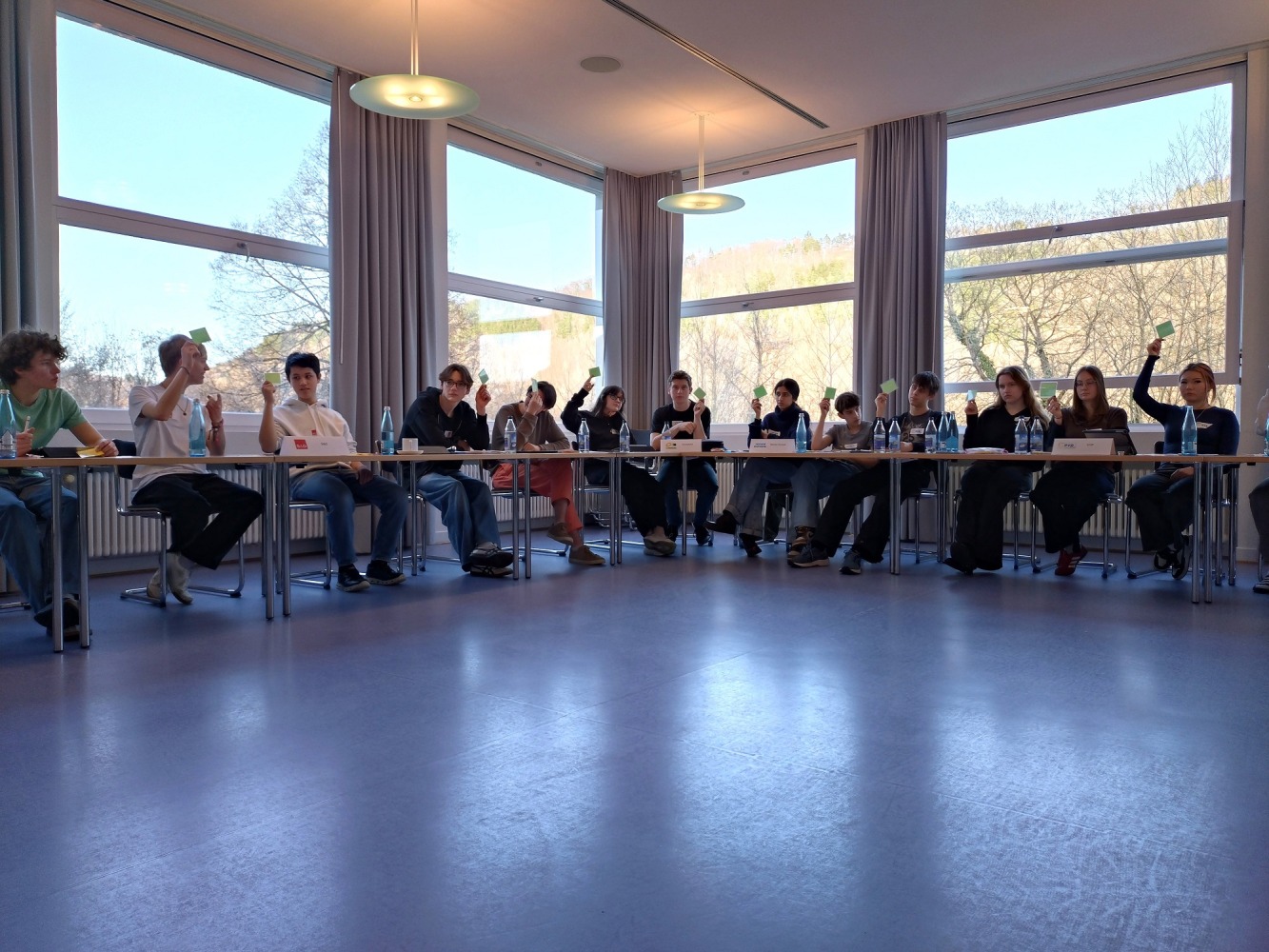 „unfassbar viel Spaß gemacht“ hat die Fachexkursion Gemeinschaftskunde im März 26, bei der der Leistungskurs von Frau Irmen, die Schule gegen das „Haus auf der Alb“ tauschte, um sich zwei Tage intensiv mit der Europäischen Union und der Landtagswahl zu beschäftigen. Wie können wir die Klimatransformation gestalten? Welche Positionen prägen die Diskurse im Land und in der Europäischen Union?