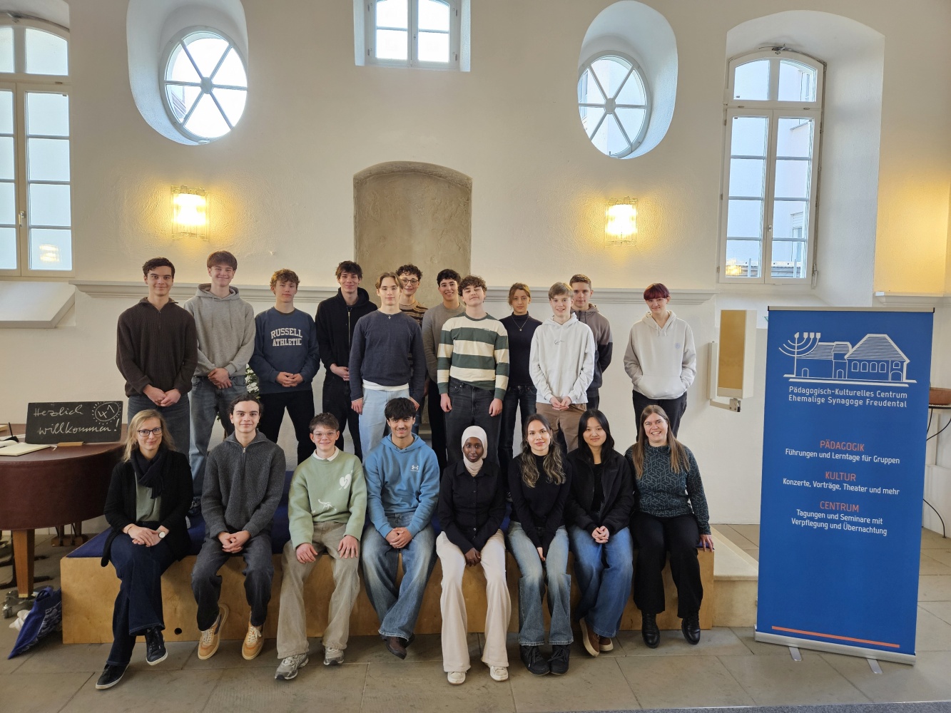 Freudental mit dem Seminarkurs "Zweitzeugen". Im Rahmen des Seminarkurses besuchten wir das Pädagogisch-Kulturelle Centrum (PKC) in Freudental bei Ludwigsburg. Dieses befindet sich in einer ehemaligen Synagoge, die während des Novemberpogroms 1938 stark beschädigt wurde. Heute dient der Ort sowohl als Gedenkstätte für die im Nationalsozialismus ermordeten Juden als auch als Veranstaltungszentrum.