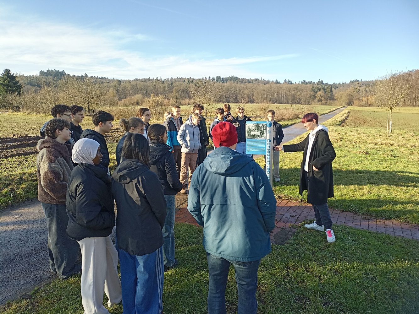 zum Jahresgedenktag der Reichsprogromnacht. Kurz vor dem Jahrestag der Reichsprogromnacht (vom 9. auf den 10. November 1938) trafen sich am 7.11.2025 die 9A und der Seminarkurs, um den Opfern des Holocausts zu gedenken. Gemeinsam erinnerten wir den Familien Adler und Moos aus der Gartenstraße 5 und Herrn Wormser aus der Renckstraße 1.