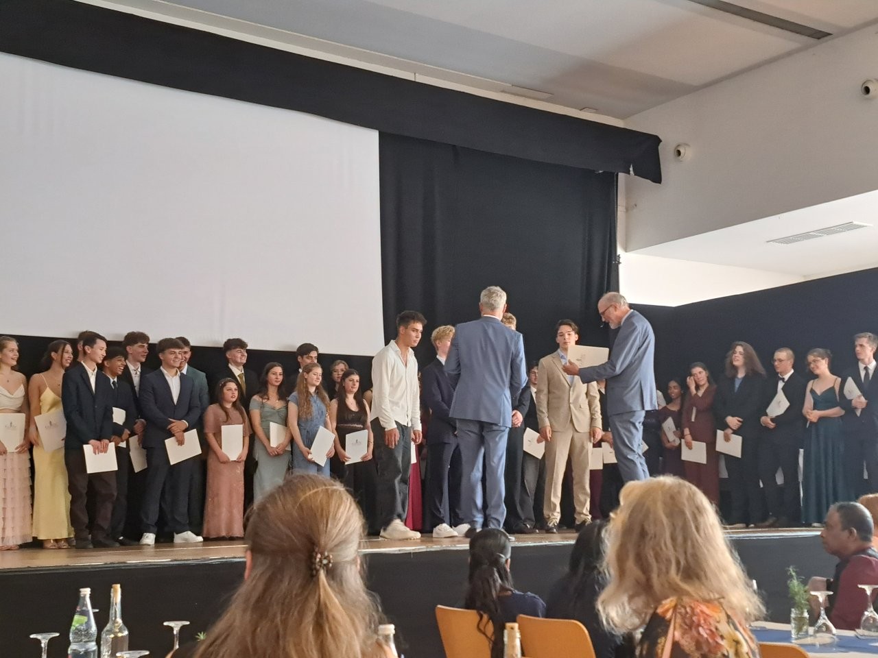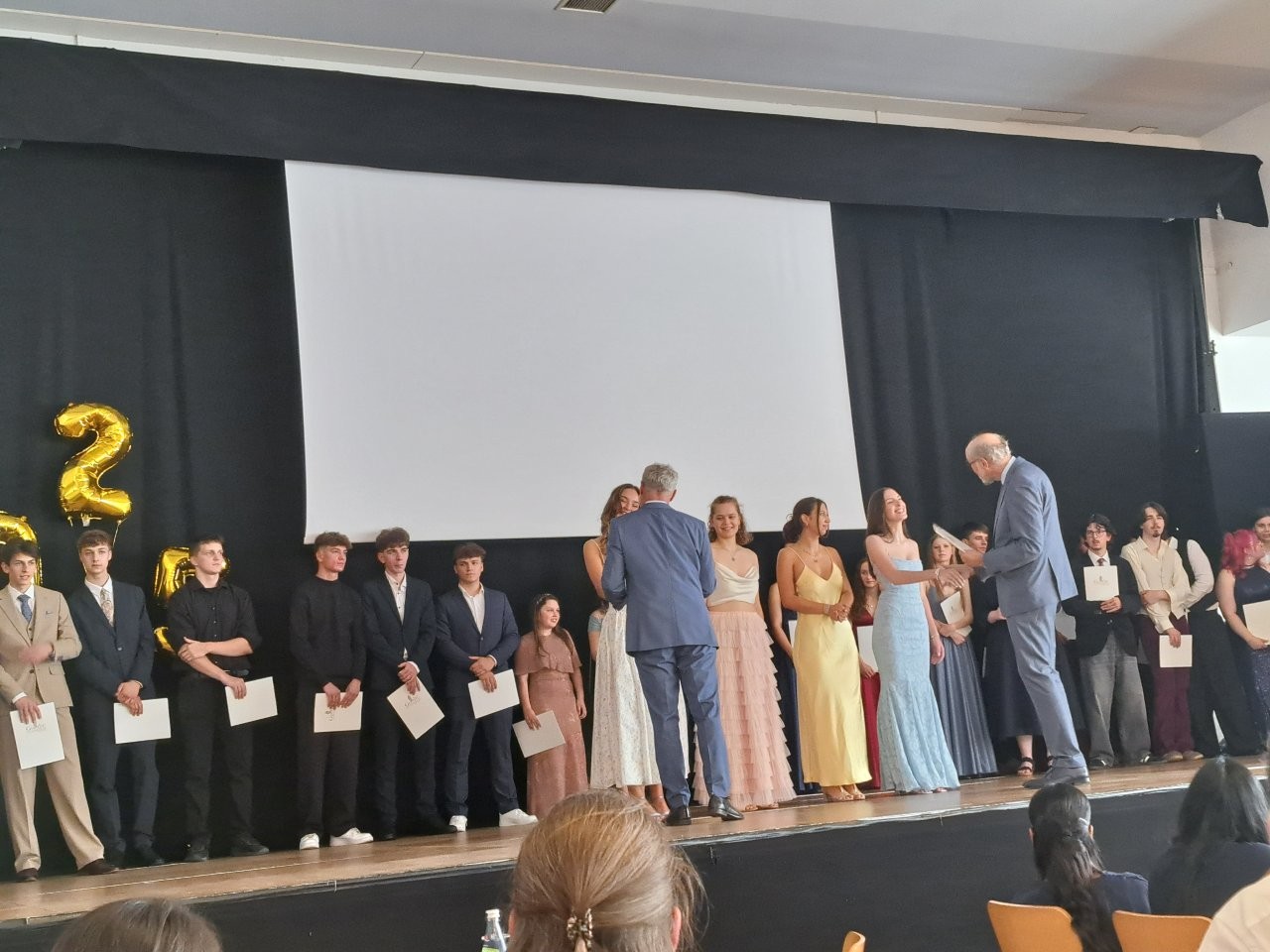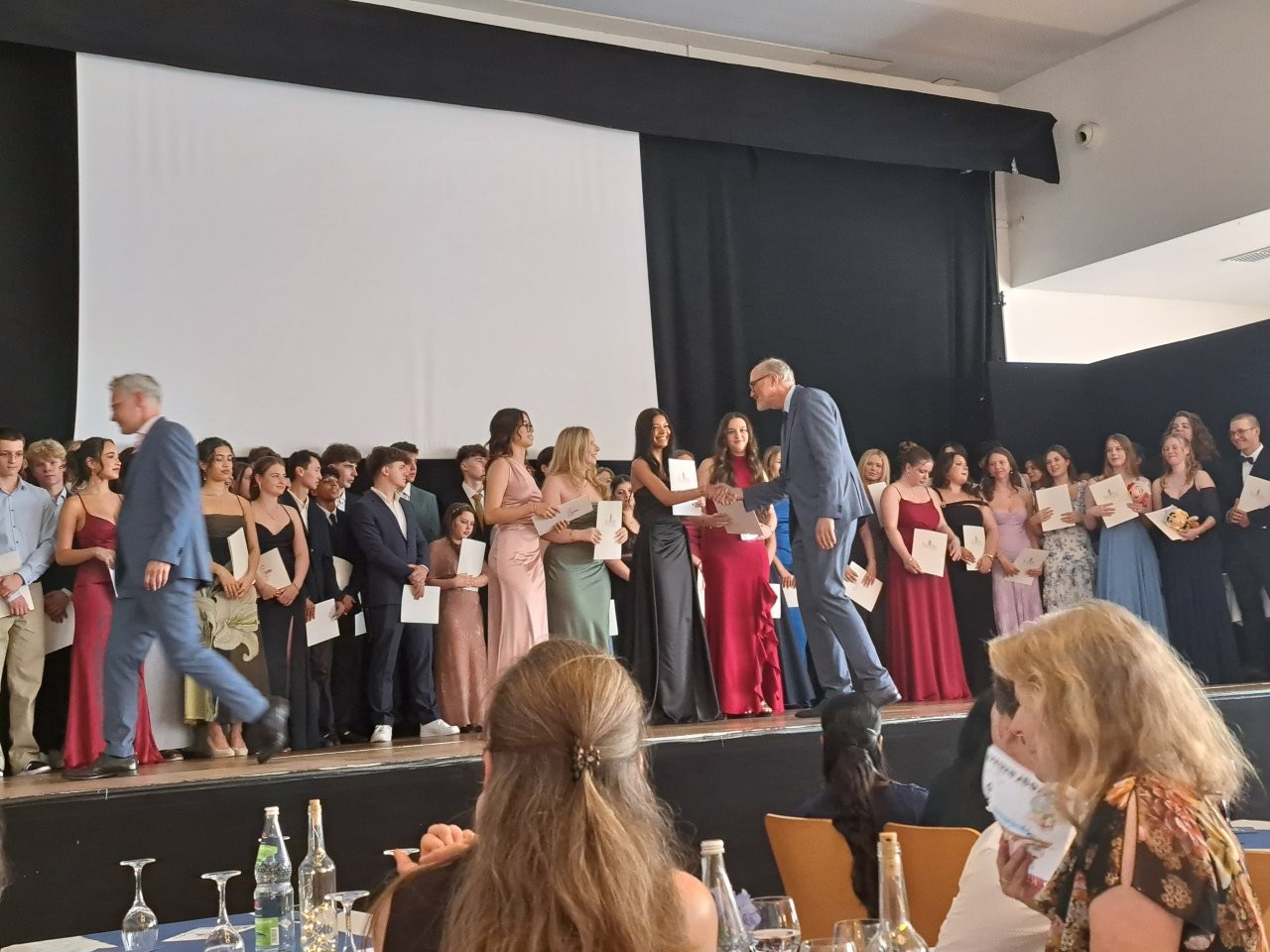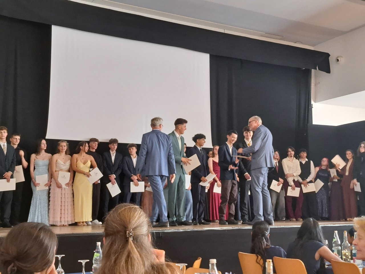 In gewohnt festlichem Ambiente feierten die Abiturient*innen ihren Schulabschluss. Das Programm umfasste nach der Rede von Herrn Dr. Aichelin und einem guten Essen die Übergabe der Abitur-Zeugnisse, die Ehrungen der Preisträger*innen, die Rede von Julius Ribstein und einige Danksagungen an die Leistungsfach-Lehrer*innen. Die Fotos geben einige Eindrücke wieder.