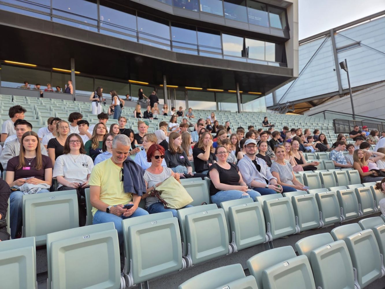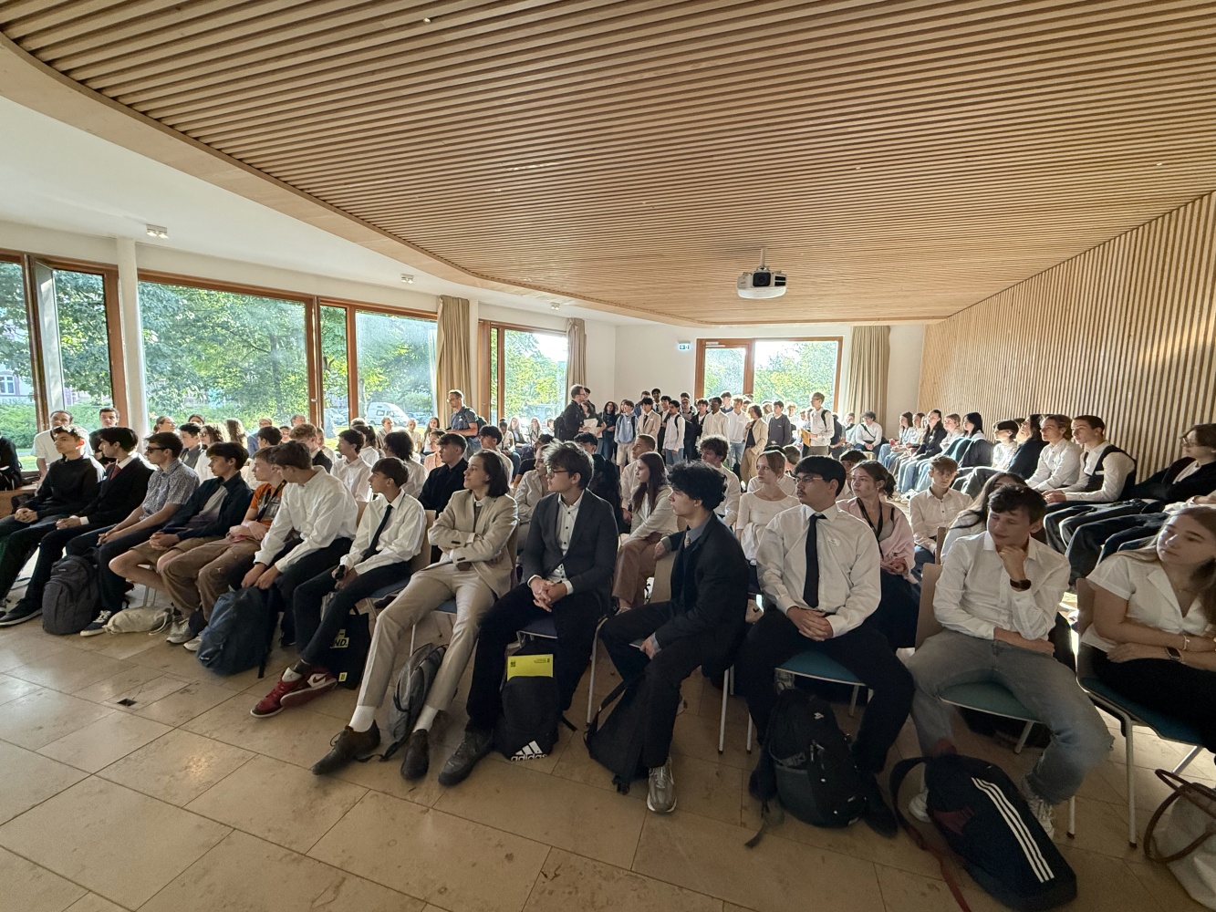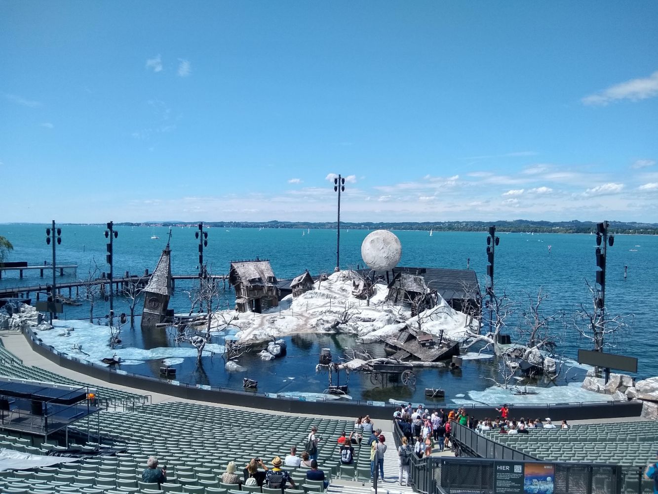 Am Samstag, den 12.07.2025, erlebten 91 Zehntklässler*innen begleitet von fünf Lehrkräften und unserer Sekretärin Frau Kaufmann die Oper Der Freischütz von Carl Maria von Weber auf der größten Seebühne der Welt. Erstmalig mussten wir, aufgrund der großen Teilnehmerzahl, sogar mit zwei Bussen anreisen. Im Rahmen der Young People’s Night nahmen wir an einer Führung und an der Bühnenshow teil. Wir durften nicht nur Backstage, sondern sogar die Bühne selbst betreten. Außerdem blieb bei angenehmen 25 Grad Zeit zum Flanieren an der Bodensee-Uferpromenade oder zum Lauschen der zahlreichen Bands, die auf dem Vorplatz des Festspielhauses auftraten. Um 21.15 Uhr begann endlich die Vorstellung: ein beeindruckendes Bühnenbild, ein fulminantes Orchester (Wiener Symphoniker), überragende Solisten und faszinierende Spezialeffekte zogen uns sofort in ihren Bann. Alle waren sich einig: dieses Opernerlebnis werden wir nie vergessen. Um 3.30 Uhr waren wir schließlich müde, aber glücklich wieder zurück am Goethe.