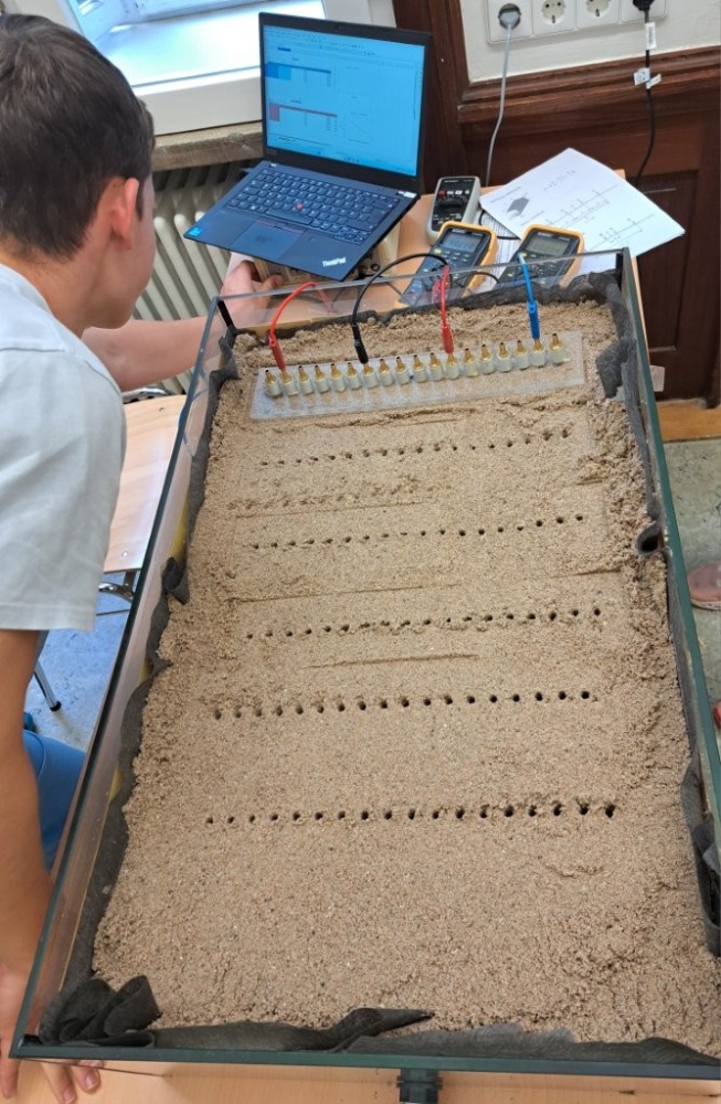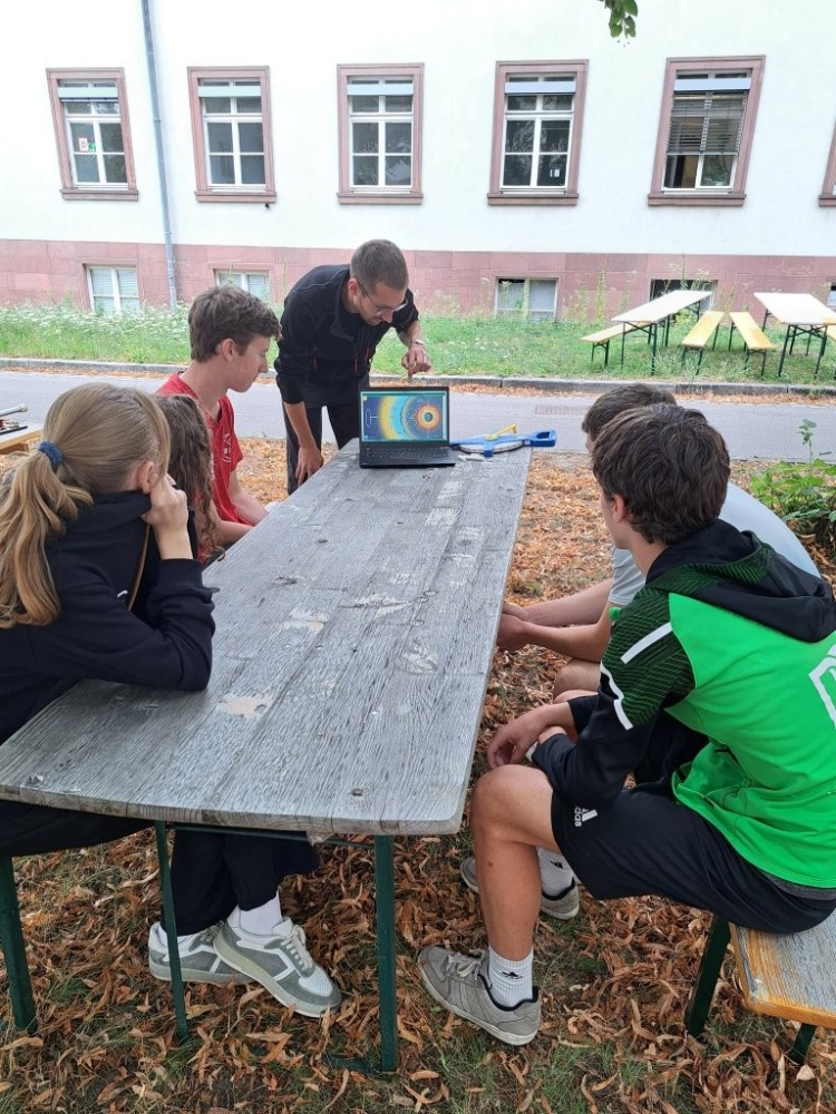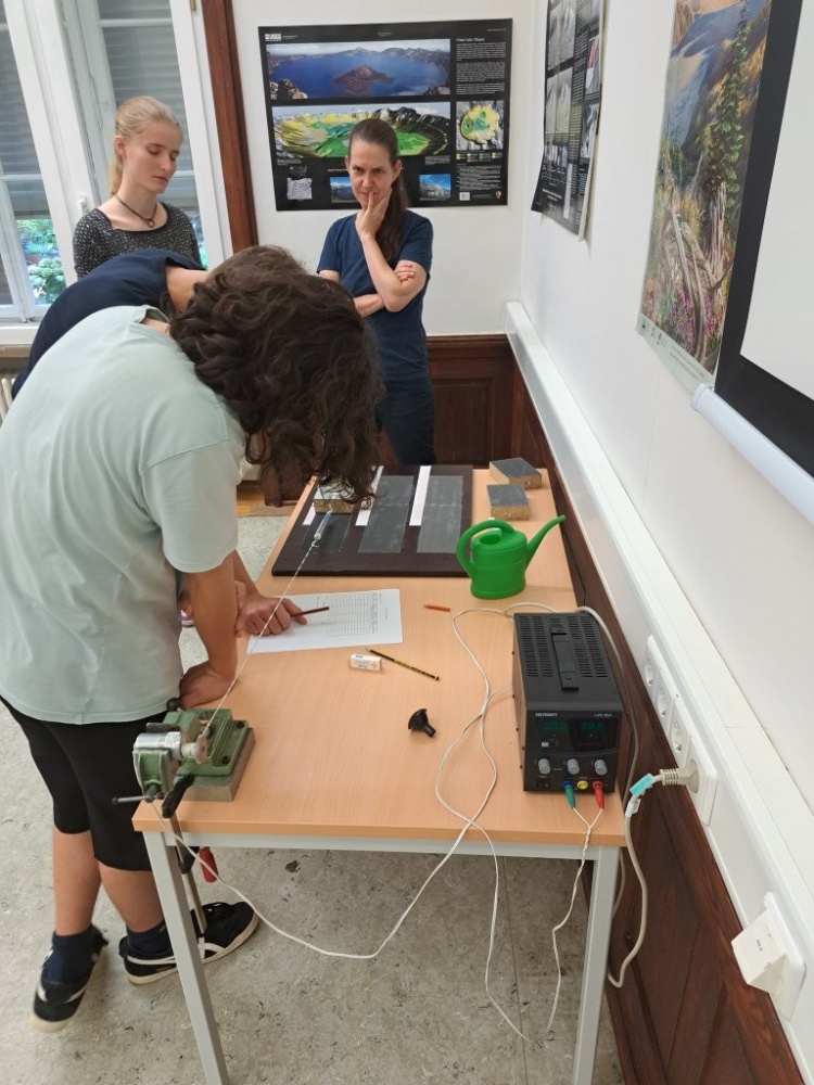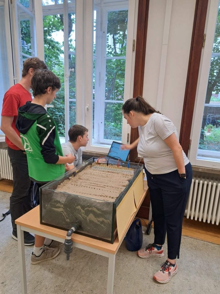 Im Rahmen der Projektwoche konnten die zukünftigen Geographie- und Physik-Leistungsfachschüler*innen das Schülerlabor des Geophysik-Instituts des KIT besuchen. Nach einer Einführung in diese naturwissenschaftliche Fachrichtung von Prof. Dr. Henriette Sudhaus konnten die Schüler*innen selbst Experimente durchführen: