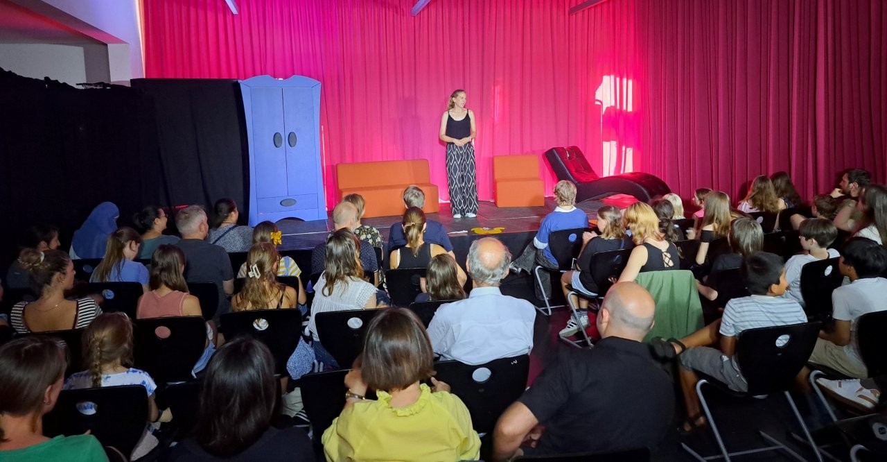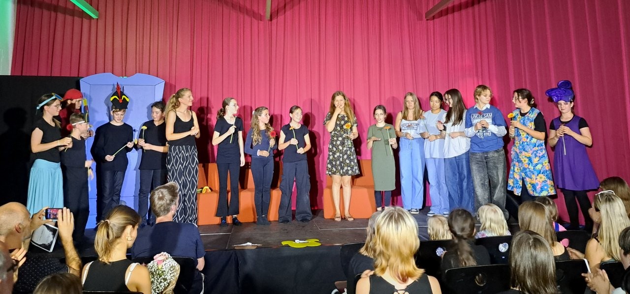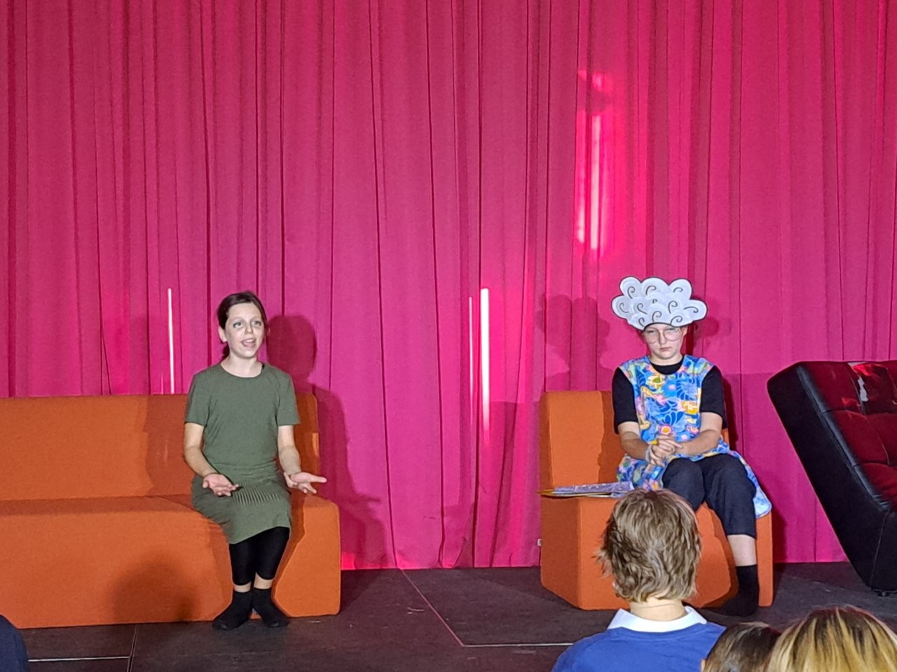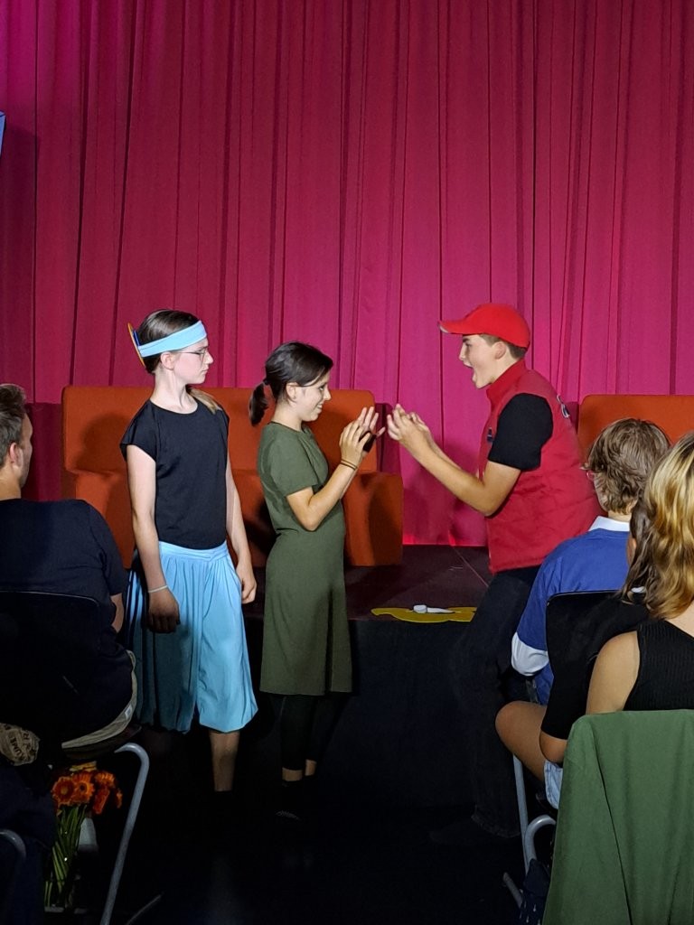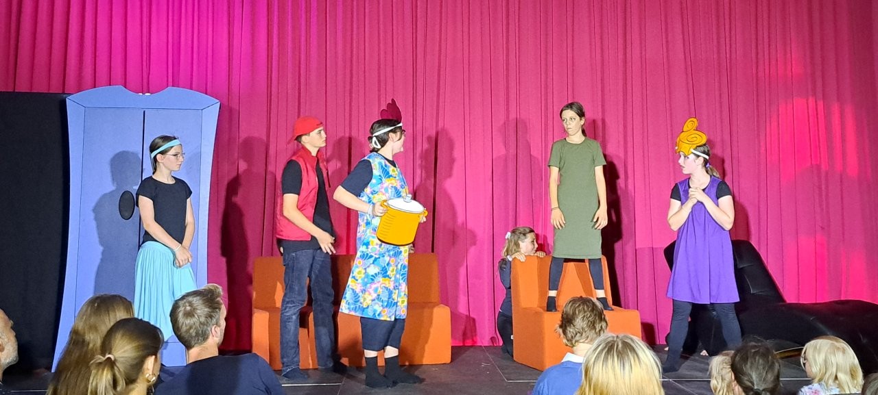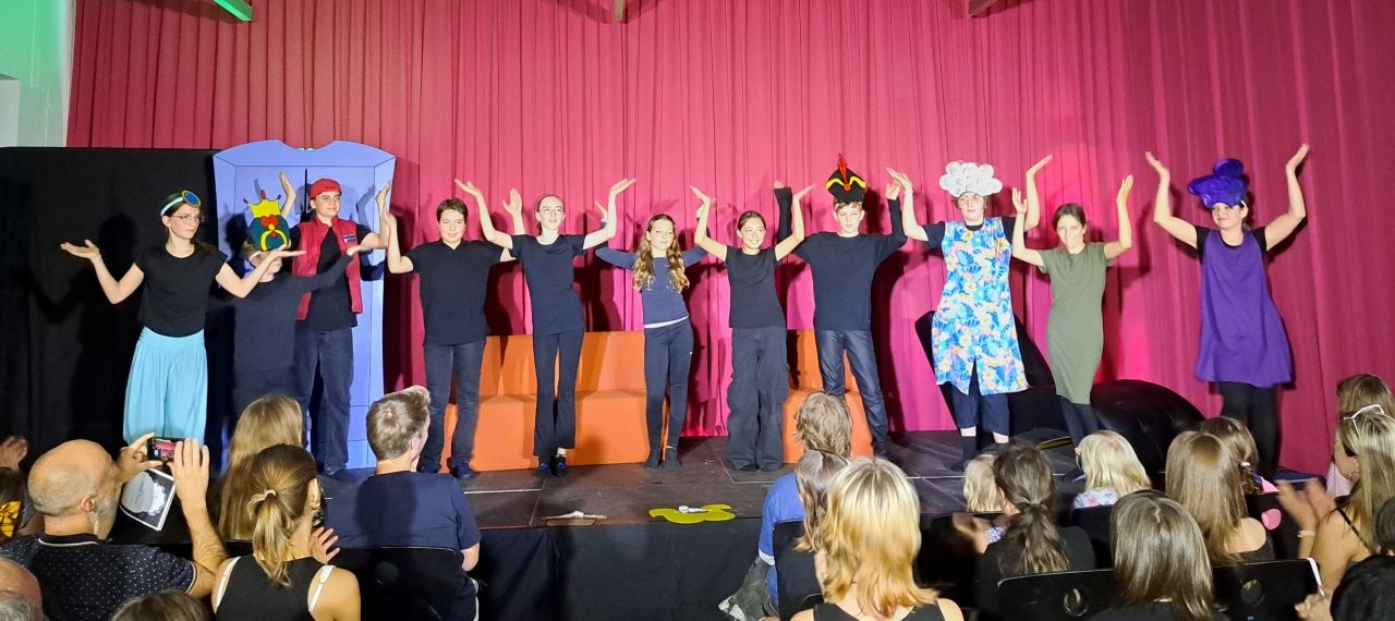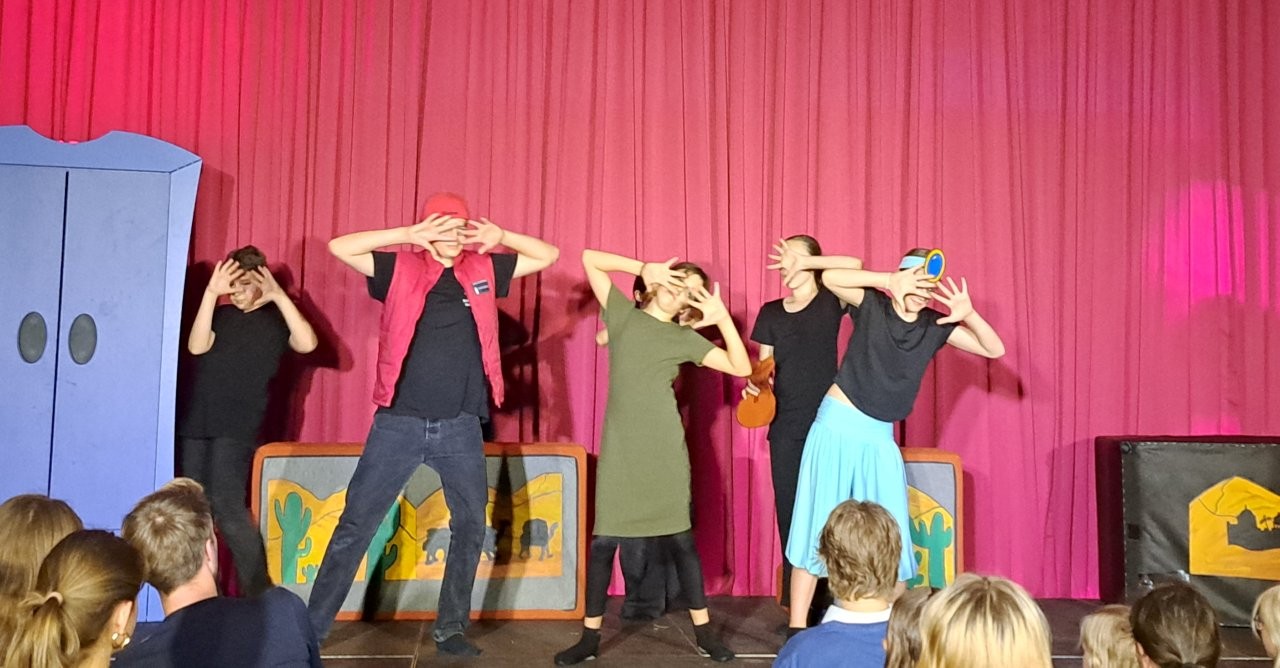spielt Lippels Traum. Die Schüler*innen der Unterstufen-AG boten zwei grandiose Vorstellungen: Lippels Traum - nach dem Kinderbuch von Paul Maar. Die Geschichte spielt in einer Woche, die Lippel (eigentlich Philippa) ohne ihre Eltern aber mit Betreuerin verbringt, und gleichzeitig einen Traum im Morgenland erlebt. Dabei taucht sie in den Zauber des Orients ein, findet neue Freunde, durchquert die Wüste und meistert gefährliche Situationen.