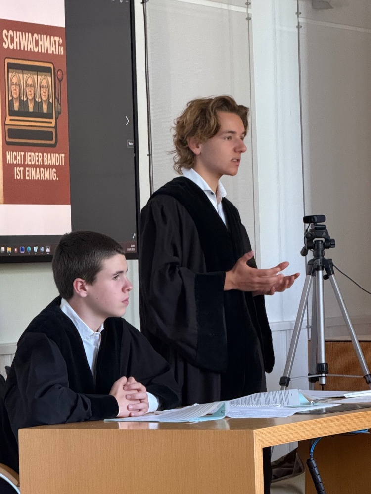 der zehnten Klassen. Wie fühlt es sich an, als Angeklagter vor Gericht zu stehen? Welcher Entscheidungsprozess steckt hinter einem Gerichtsurteil? Auch wenn die meisten sich hoffentlich noch nie in einer solchen Situation befanden, ist es doch wichtig zu verstehen, wie das deutsche Rechtssystem in der Praxis funktioniert. Eine Möglichkeit dazu bietet der sogenannte Moot Court, ein Planspiel, das oft an Jurafakultäten durchgeführt wird. Gerichtsverhandlungen aus verschiedensten Rechtsbereichen werden nachgespielt.