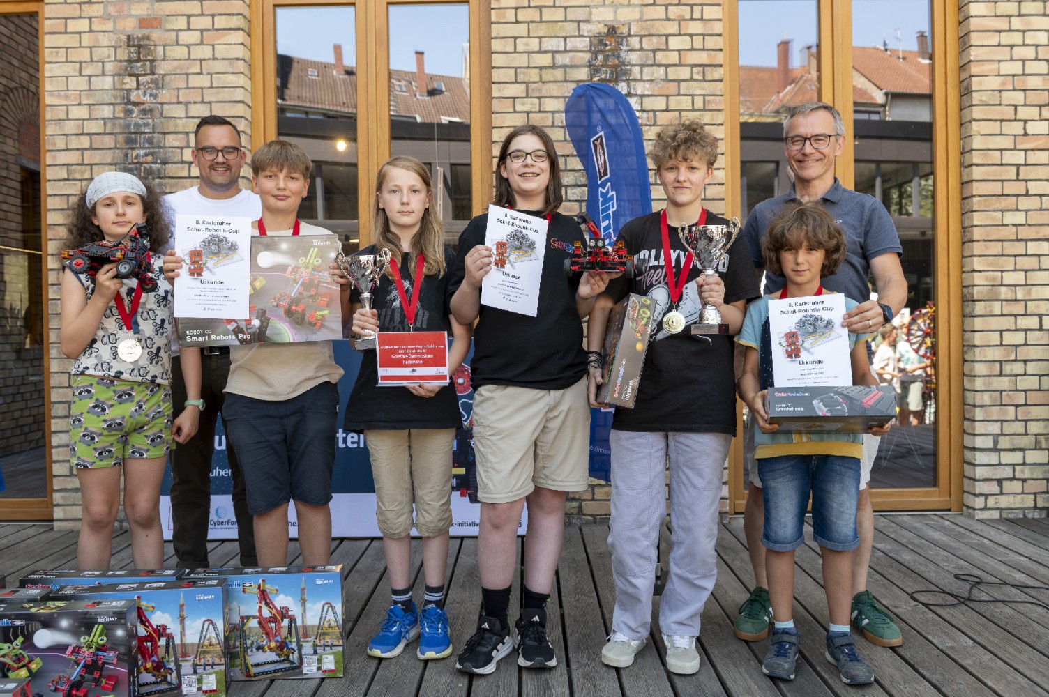Goethe-Gymnasium Karlsruhe Sieger. Auch in diesem Jahr hat das Goethe-Gymnasium beim Schul-Robotik-Cup wieder ordentlich abgeräumt. Mit den Teams "irgendwas", "Otto-Dieter-Franz-Hans-Jürgen-Sigfried von Schneiderlein der 8." und "Feuerfrettchen" konnten 3 von 4 Goethe-Teams Podiumsplätze einfahren. Mit dem Sieg in der Disziplin „Einparkroboter“ hat sich das Team "irgendwas" vom Goethe-Gymnasium (Luca Rutschmann und Janik Priller) für das 1. Deutsch-Koreanische Schul-Robotik-Cup-Finale qualifiziert. Dieses findet am Freitag 18. Juli um 9:30 Uhr in der Hoepfner-Burg statt. Die Ergebnisse der einzelnen Disziplinen: