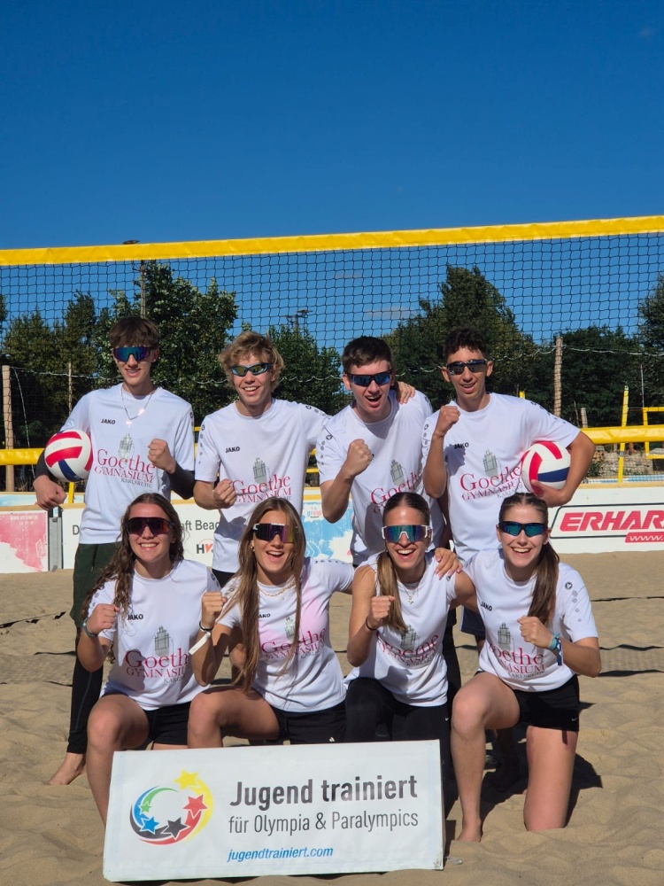 Jugend trainiert für Olympia. Vom 21.9. bis 25.9. ging es für unser Beachvolleyball-Team zum Herbstfinale von Jugend trainiert für Olympia und Paralympics nach Berlin. Als erstes Schulteam in der Geschichte des Goethe-Gymnasiums, dass sich für das Bundesfinale qualifizieren konnte, zeigten die Schülerinnen und Schüler, dass sie mit den besten Teams der anderen Bundesländer mithalten konnten.
