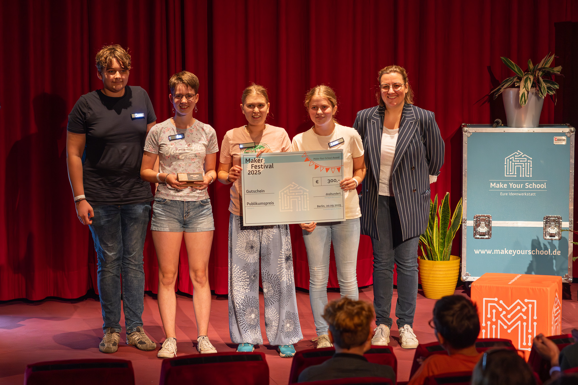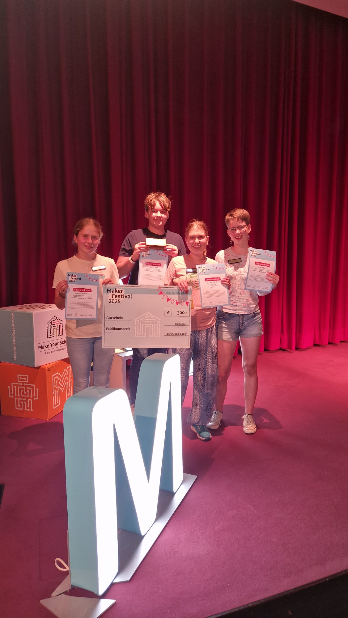 – Publikumspreis errungen. Am 19.09.2025 war endlich alles soweit: Wir - das Team GGK - ganz, ganz krass - fuhr mit einem perfekt funktionierenden Hack (Lehrersprechstundensystem) zum Maker Festival in Berlin. Unser Hack bzw. unsere Gruppe wurde aus vielen hunderten deutschlandweit ausgewählt und nach Berlin eingeladen. Dort angekommen, liefen wir erst einmal beim Reichstag und dem Bundeskanzleramt vorbei und atmeten (teils zum ersten Mal!) die Luft Berlins ein. Später wurde die Hauptstadt noch im Rahmen einer Stadtrallye mit den anderen Teams und im Dunkeln genauer besichtigt und erkundet.